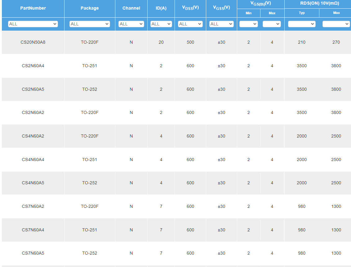CS7N65,具有7A、650V的電性參數(shù),反向恢復(fù)時(shí)間Trr為450nS,導(dǎo)通電阻RDS(on)為1.13歐姆@VGS=10V。